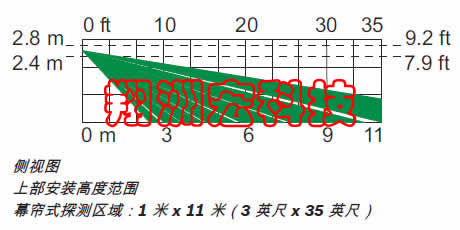 注解可選的安裝支架會減少探測器的探測范圍,并會增加探測盲區(qū)。